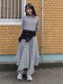 マルチカラーのボーダーテレコを使用したカットワンピースにリボンのウエストポーチを使用したスポーツミックスコーデ♪ Candy Stripper福岡店/河野/160cm
