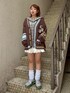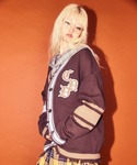 カレッジテイストのカーディガンに チェックシャツとフリルスカートを合わせた ストリートコーデ♪ Candy Stripper名古屋店/太田/156cm