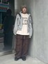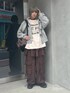 ロゴプリントのトップスにフーディーと チェック柄のティアードスカートとパンツを組み合わせたストリートコーデ♪ Candy Stripper原宿店/中西/160cm