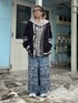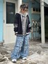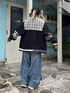 カレッジテイストのカーディガンに セーラーカラーのチェックシャツと デニムパンツを合わせたストリートコーデ★ Candy Stripper池袋店/小川/154cm