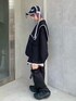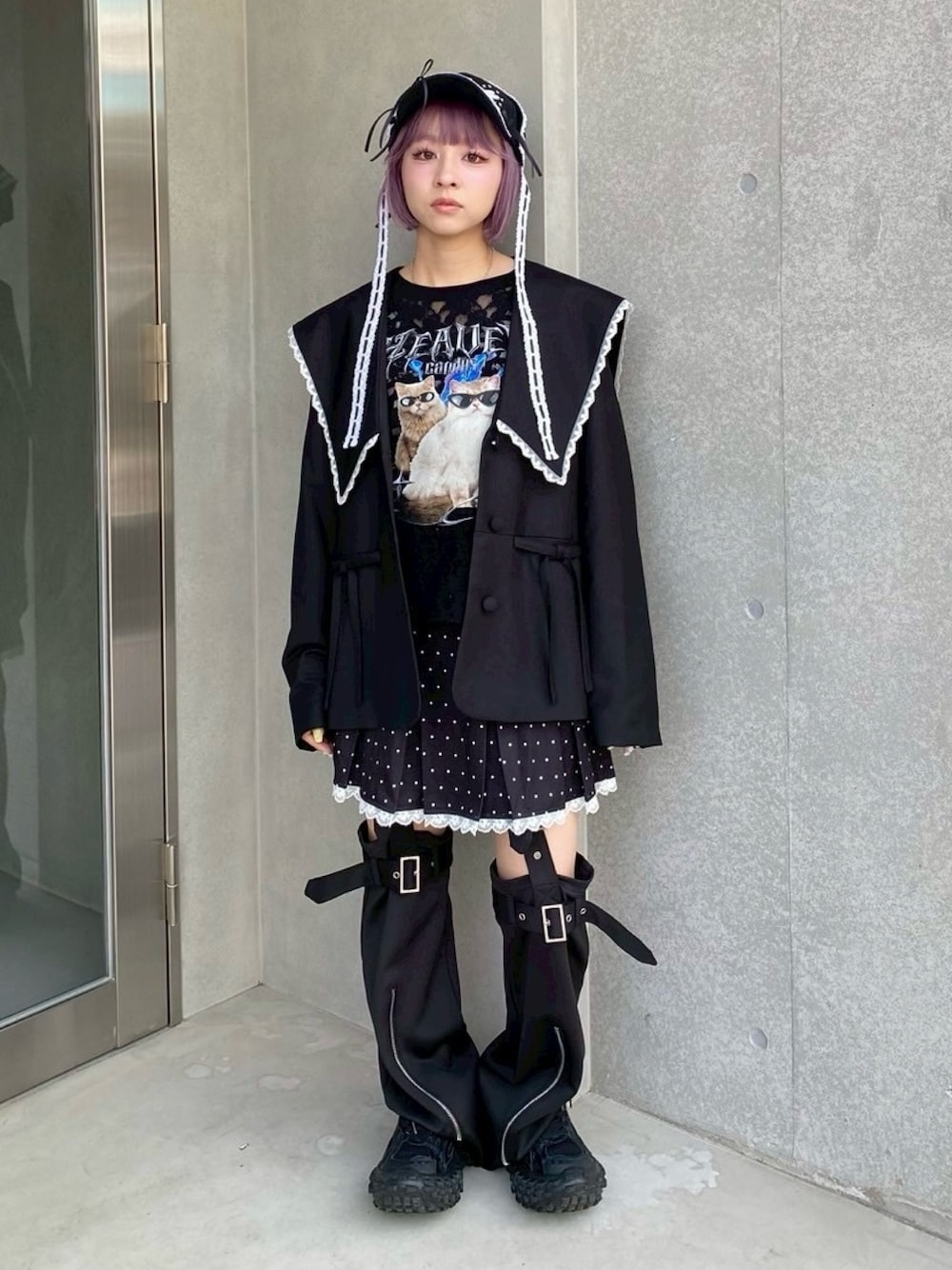 ラグラントップスにジャケットと ドット柄のプリーツスカートとトラックパンツを合わせた秋コーデ♪ Candy Stripper原宿店/久慈/148cm
