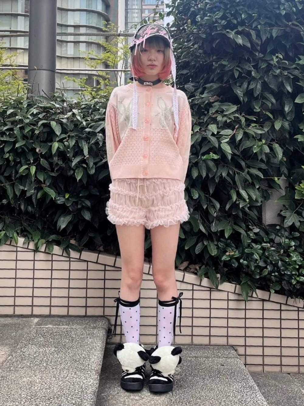 うさぎのニットカーディガンにチュールのショートパンツを合わせた秋コーデ♡ Candy Stripper福岡店/馬場/166cm