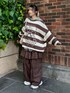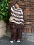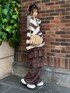 ボーダーのニットにセーラーカラーのチェック柄シャツとティアードスカートとパンツを 合わせたブラウンコーデ♪ Candy Stripper池袋店/小川/154cm