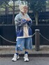 ファイヤーパターンを大胆に編み立てたニットジャンパーにトップスとデニムパンツを合わせたニットコーデ♪ Candy Stripper池袋店/小川/154cm
