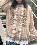 チェックのブルゾンにTシャツと ティアードスカートをレイヤードした デニムパンツを合わせたチェックコーデ♡ Candy Stripper福岡店/河野/160cm