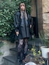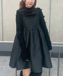 ガーリーなテイストのフェイクレザージャケットにドット柄ジャガードのキャミワンピースを合わせた大人ガーリーコーデ♡ Candy Stripper原宿本店/中西/160cm