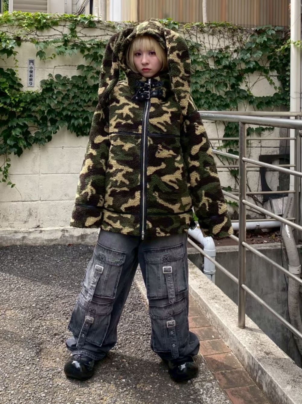 初詣にもピッタリ!暖かいモコモコボアジャケットにワイドシルエットのデニムパンツを合わせた、冬のお出掛けコーデ♪ Candy Stripper原宿店/久慈/148cm
