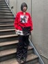 プードルのフォトプリントがキュートなスウェットトップスにベルトスカートとサテンパンツをレイヤードさせたカジュアガーリーコーデ♡ Candy Stripper原宿店/中西/160cm