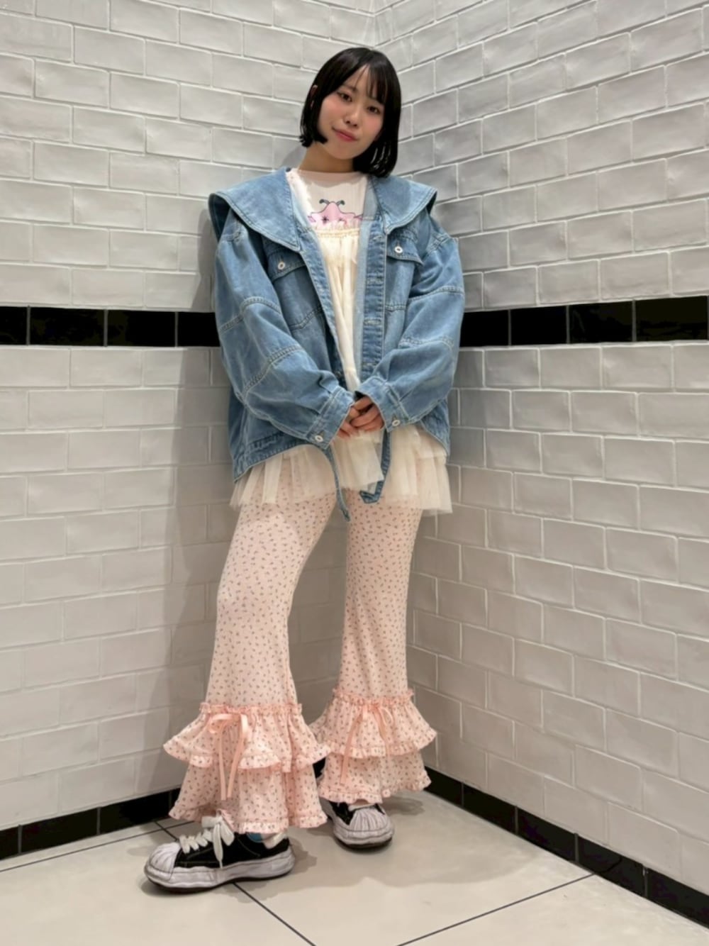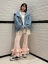 春らしい小花柄のフレアパンツにオーバーシルエットにデニムジャケットを合わせたお出かけコーデ♪ Candy Stripper福岡店/河野/160cm