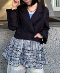 ジャケットとハーフパンツのセットアップにシアートップスを合わせたレイヤードスタイル♡ Candy Stripper原宿店/久慈/148cm