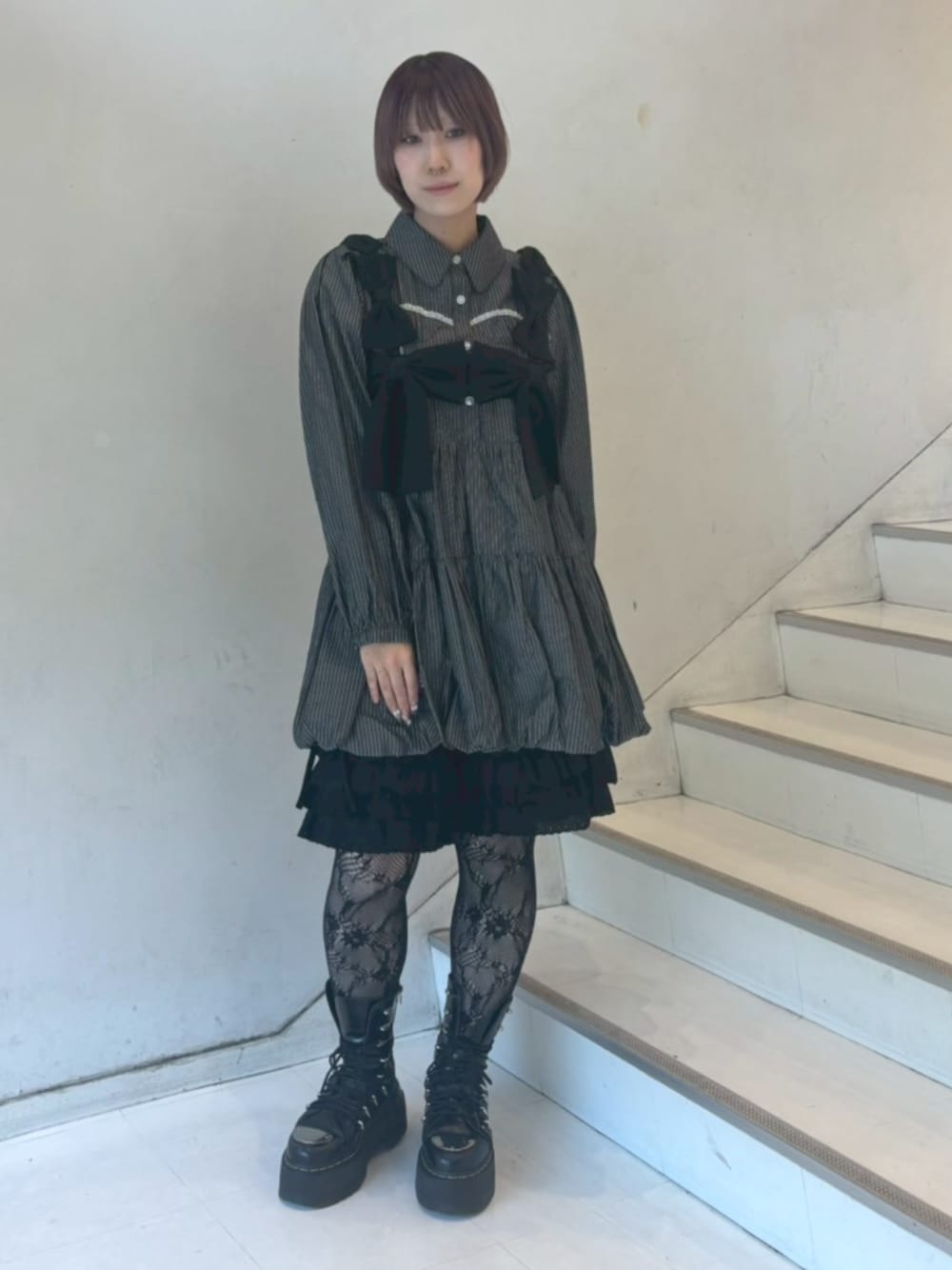 シャツワンピースにリボンビスチェをレイヤードさせたキレイめガーリースタイル♡ Candy Stripper原宿店/中西/160cm