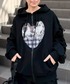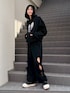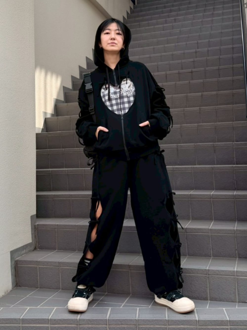 胸元がハート型にくりぬかれたキャッチーなフーディにセットアップのスウェットパンツを合わせたスポーツミックスコーデ♡ Candy Stripper本社/小原/162cm