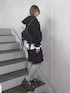 ハート型にくりぬかれたフーディにフリルディティールがポイントのショートパンツを合わせたスポーツミックスコーデ♡ Candy Stripper原宿店/中西/160cm