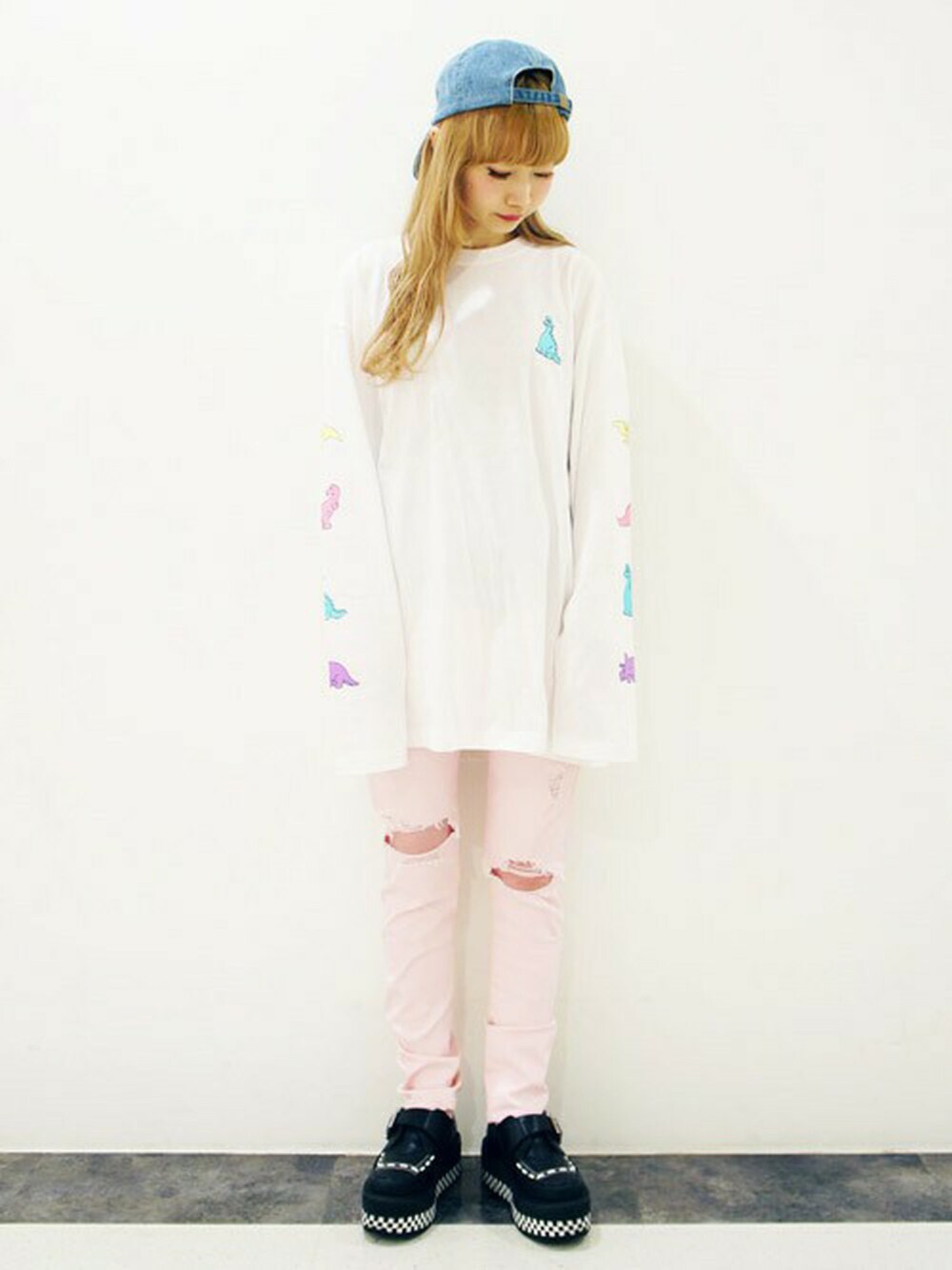 両袖にプリントされたカラフルな恐竜がポイントのトップスにクラッシュスキニーパンツを合わせて、ストリートスタイルに着こなしました! ワイドパンツにインして、G.I.ベルトを合わせたスポーティ×カジュアルスタイルもオススメです♪ 今回着用しているスキニーパンツも含め、ダメージや染め加工、シルエットなど隅々までこだわったDENIM LINEが新たに登場します! ぜひCHECKしてくださいね☆
