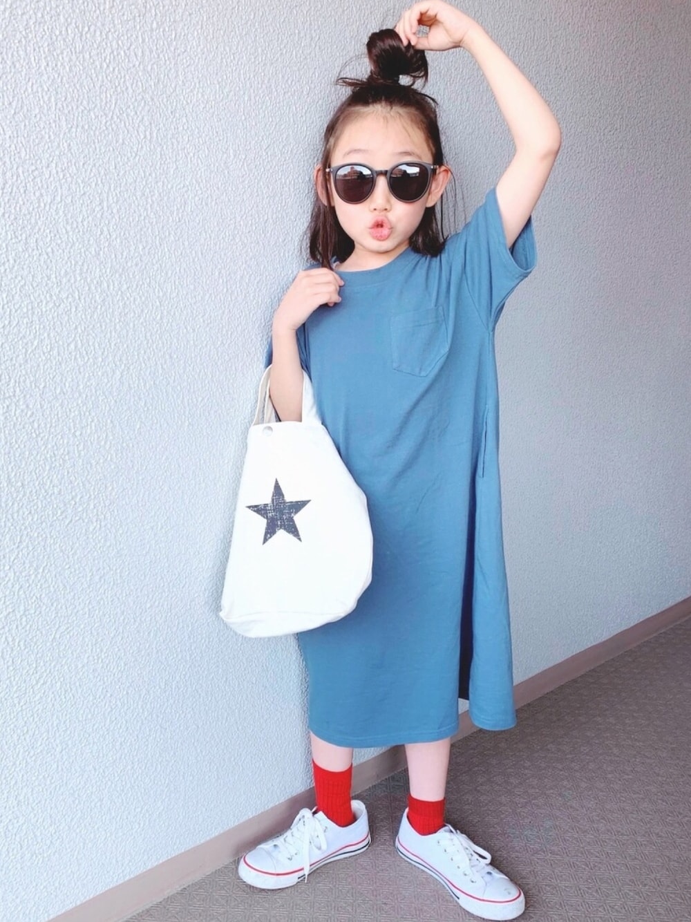 ALL デビロックコーデ♡ ワンピはビッグシルエットだから 130でこの丈感♡ いよいよ明日は運動会‼︎ 気温34度‼︎ 水分補給して頑張るぞー‼︎