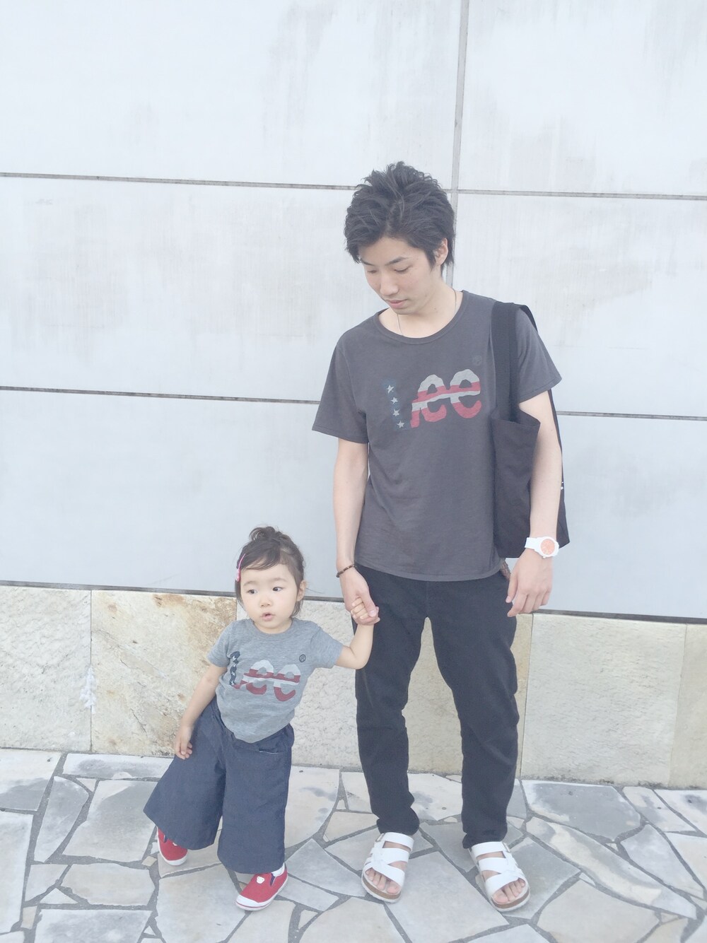 先日の父娘のやんわりリンクコーデ◎ 実は私もお揃いのトップス 持ってるのですが 主人に拒否られ、 しょんぼり違う服着てます🗣💭笑