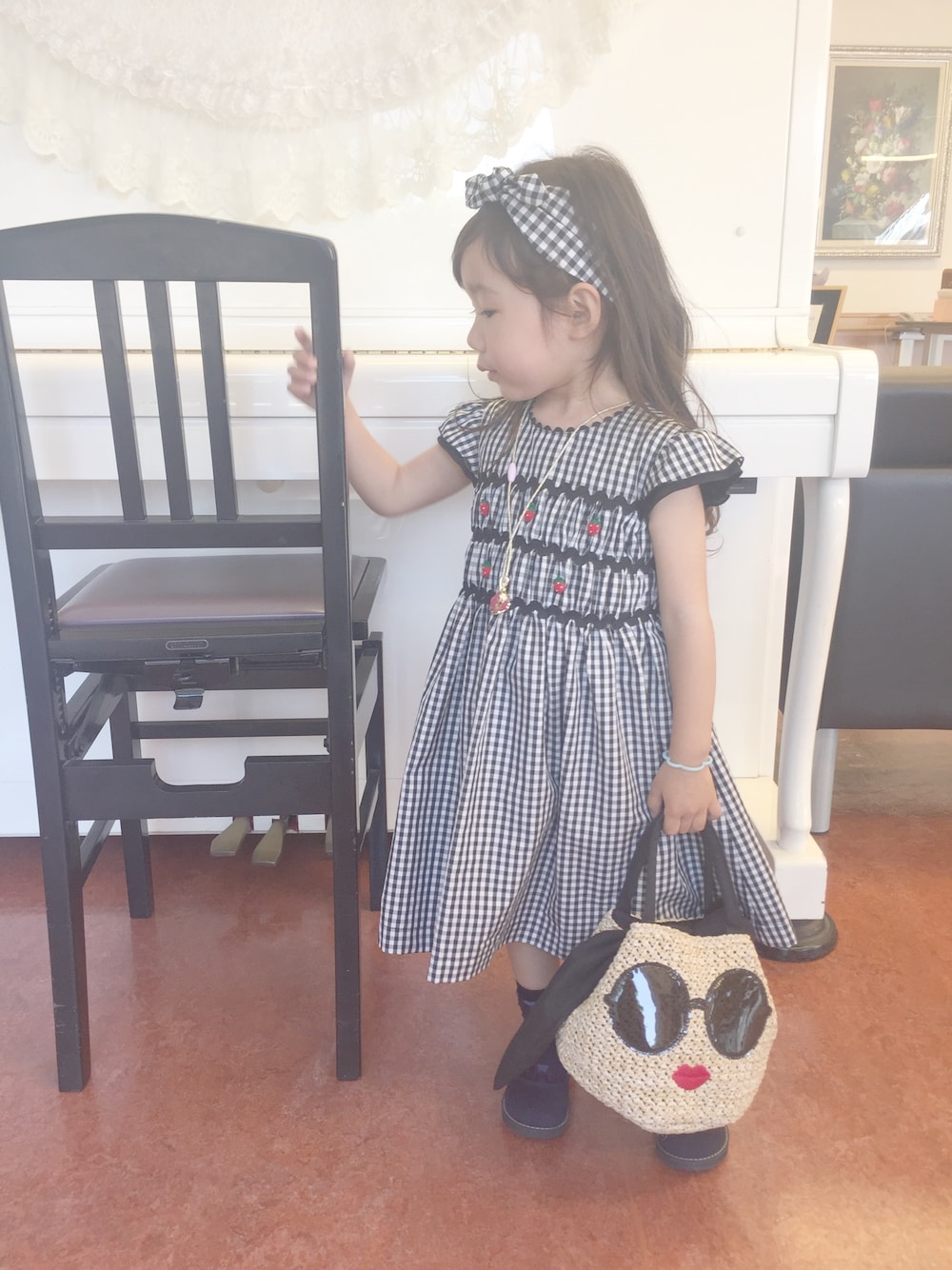 アニエスのギンガムチェックヘアバンドと いい感じにリンク♫ アジョリーバッグは娘用🕶💋