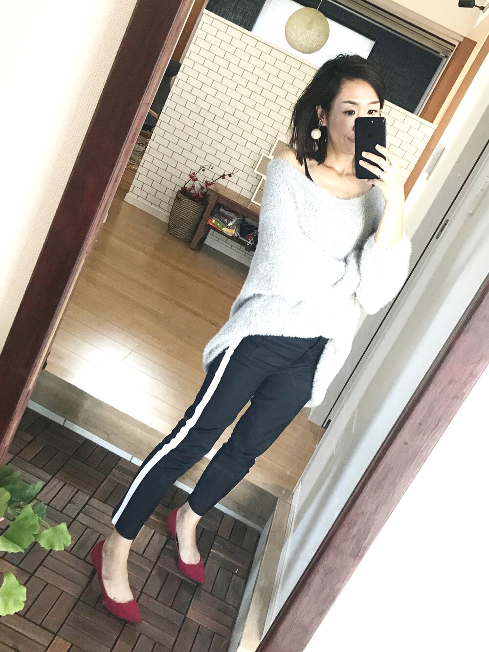 ラインパンツにオーバーファーニット❤️❤️