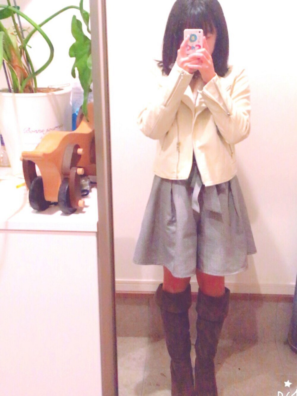 いまから家族とご飯〜〜 明日から学校(^_^) がんばろ 今気づいたけど片方だけ手首のとこ空いてる笑笑