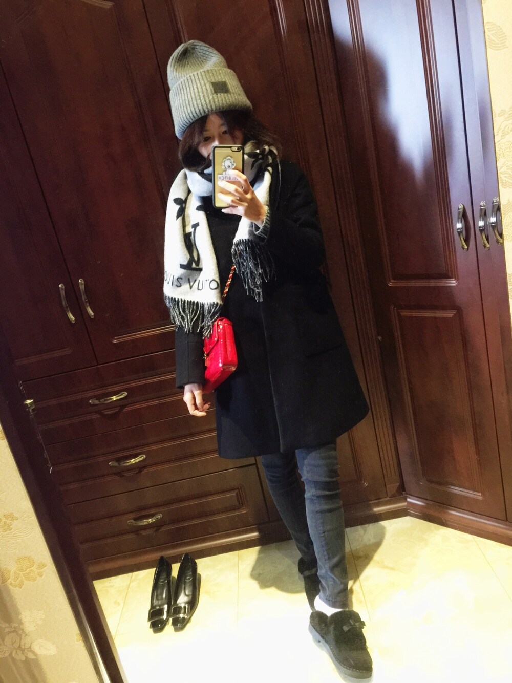 一身黑我觉得也好看啊哈哈哈哈哈哈哈只要有丢丢亮点就足够了。舒服又保暖的冬日装扮get!