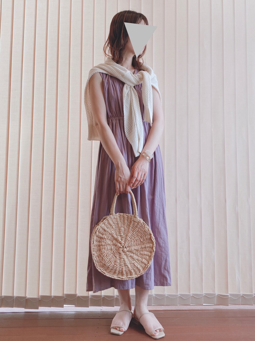 ご覧いただきありがとうございます。 パープルのクリンクルワンピースをおろしました。メッシュカーデをプラスして日焼け対策・冷房対策に。