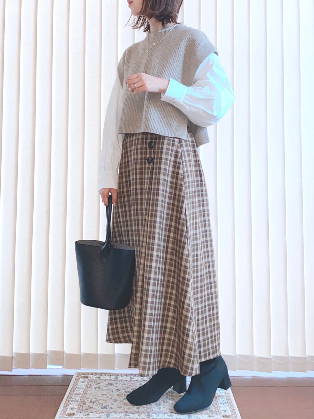 ご覧いただきありがとうございます✨ ボリュームスリーブのタックブラウスに、ベストを合わせた旬コーデです。 上下ともまterawearemuです♡ また全身しまむらですw Instagram/collin_wear