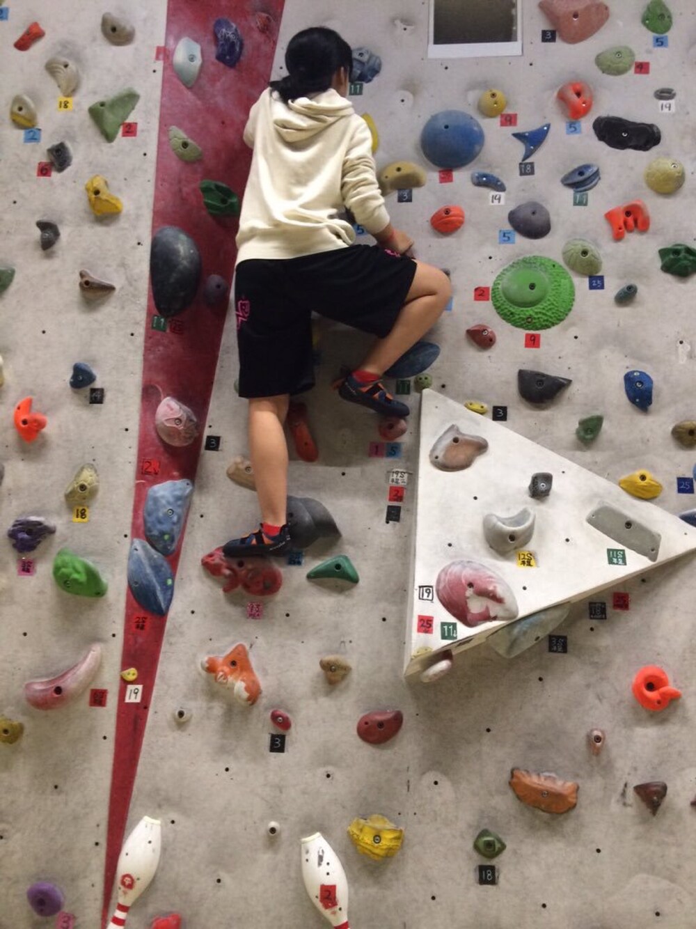 ボルダリングの時の格好。 バスケのパンツ履いてます。