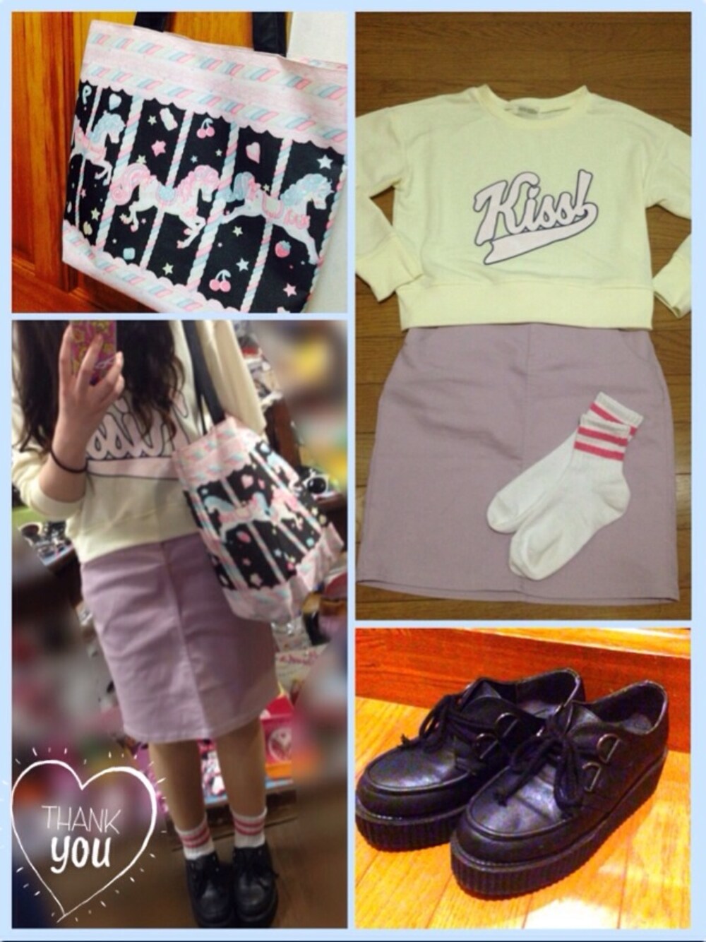 着用コーデ:2件ひーこのTシャツ/カットソー「裏毛プリントプルオーバー」を使ったコーディネート