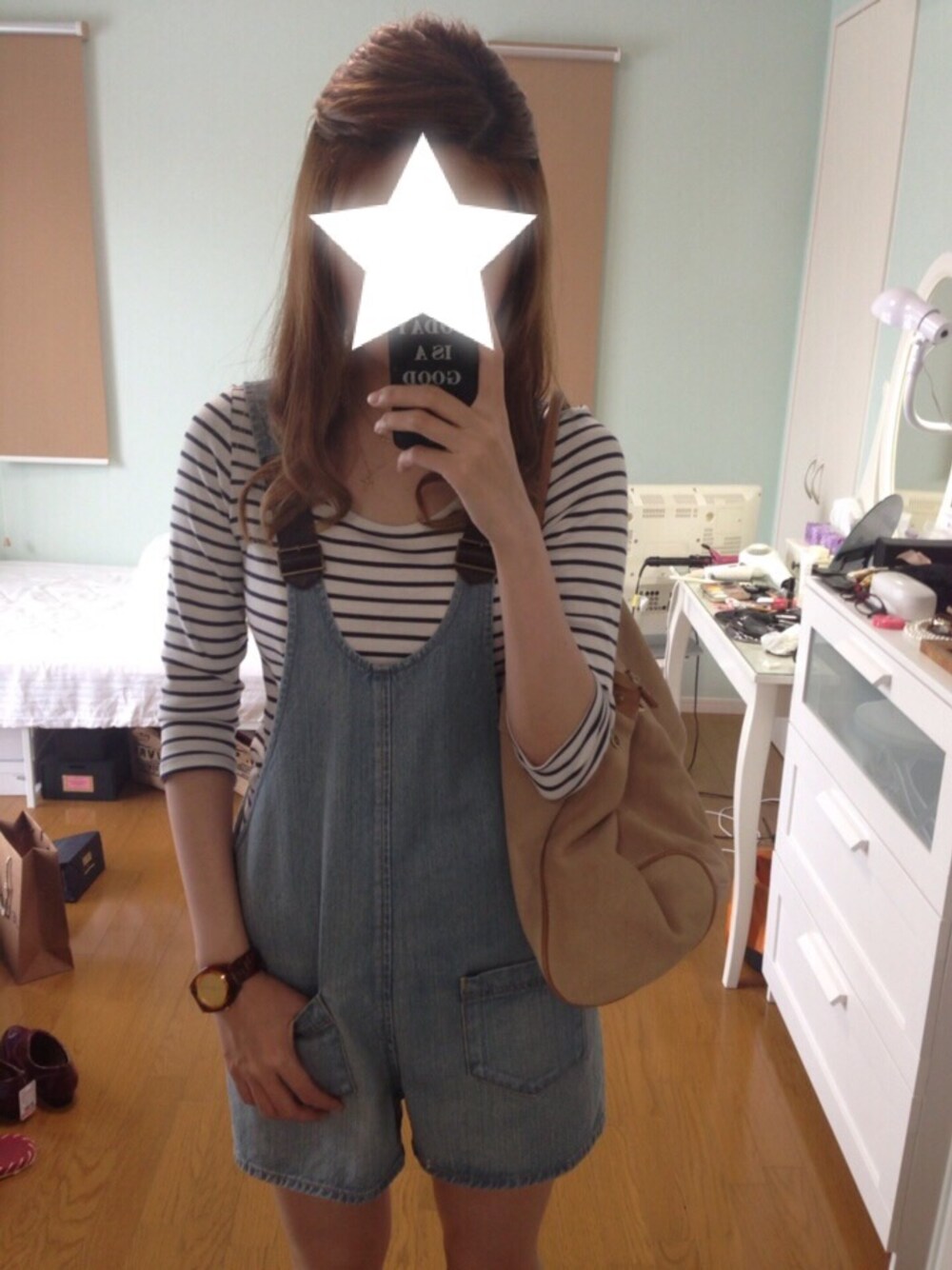 トップス▷UNIQLO このショートサロペットも好き♡ 足元ゎ黄土色?のコーデュロイのスニーカー✩