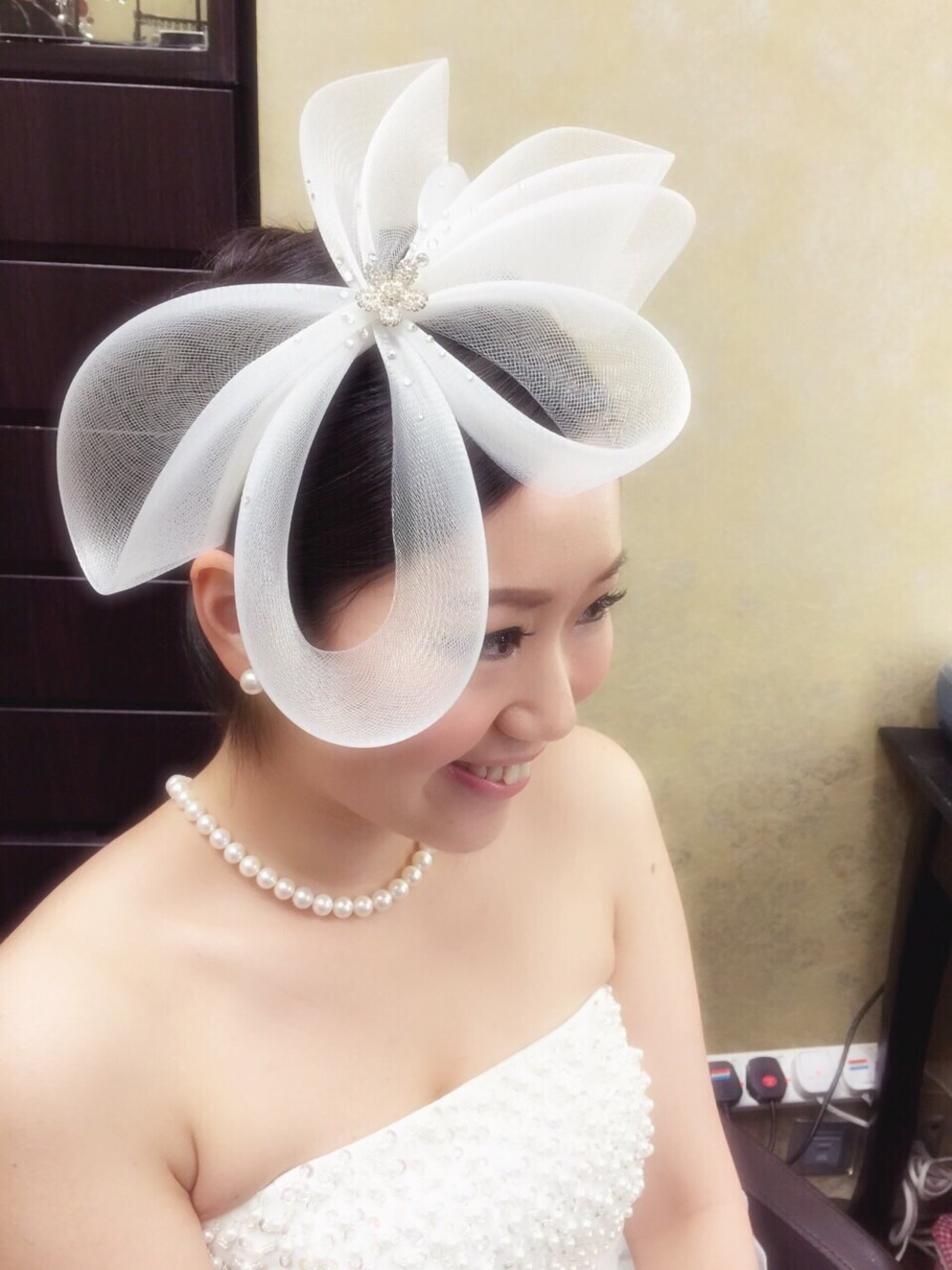 Pearl earrings & necklace with strapless wedding gown are perfect match 💕