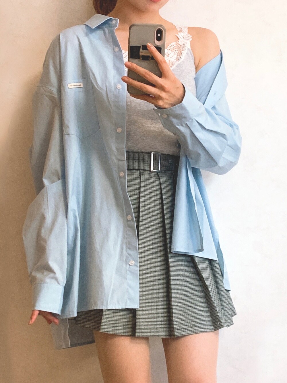 お久しぶりの更新です もう秋ですね😓 最近はずっとこのシャツ着てます♡👔 プリーツスカートも超ミニ丈だけど、 それがいい感じ ゴツいブーツかダットシューズに合わせるのが最近の気分です コメントお待ちしております🙆🏻♀️ Instagramもぜひ→プロフィールから @_ske_txh8