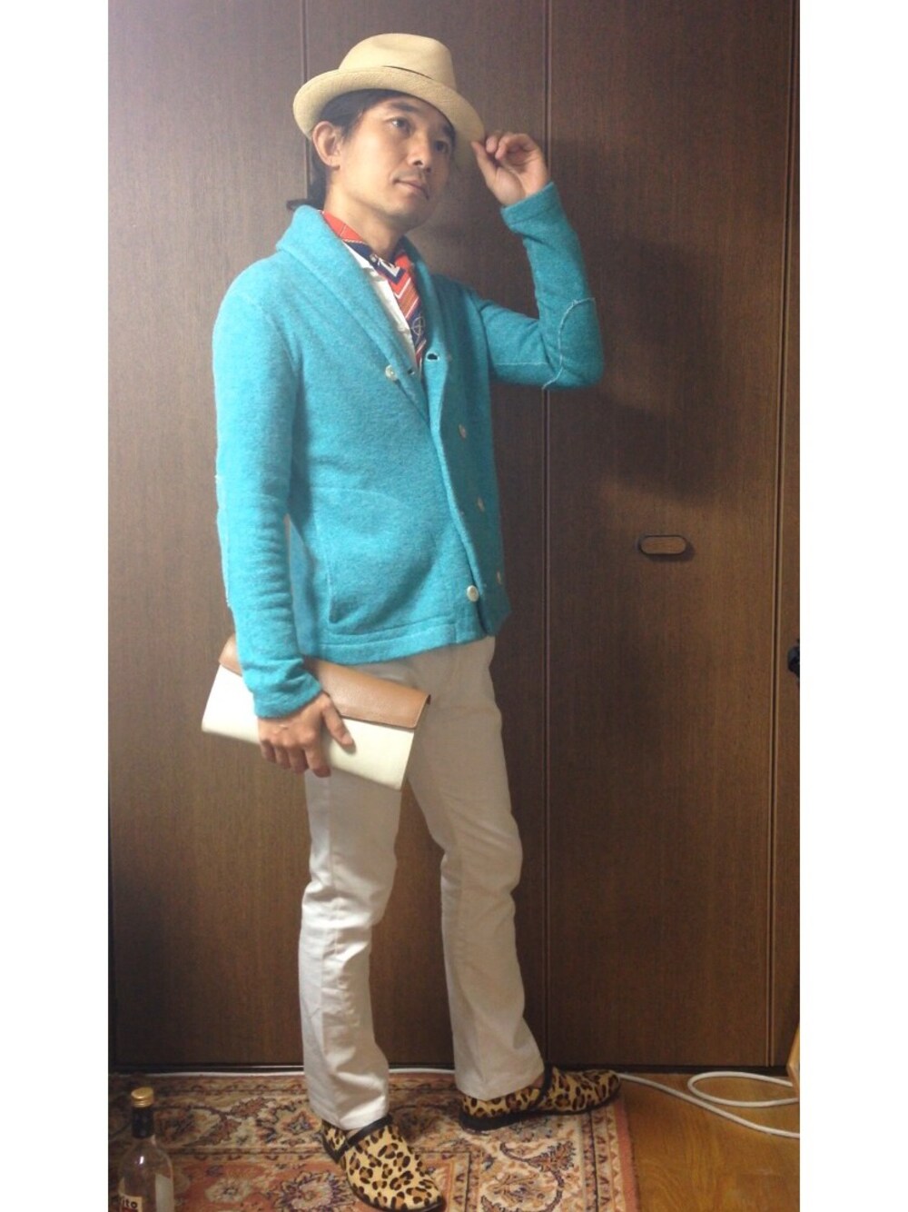 爺フェス、参加しま〜す\(^o^)/ 今年初めてハットにトライしたのですが、 最初に買ったのがこのknoxのストローハット。 首元にはフェスの条件とは少しずれるかも?だけど 祖母に貰ったスカーフを🎵 このシャツ&スカーフは今年お気に入りで、 汗かきな自分の夏の救世主👍 トップには昨日一目惚れして買ったニットを早速(^ω^) ダブルのシルエットなので中に着る物次第でいろいろな表情を見せてくれそう🎵