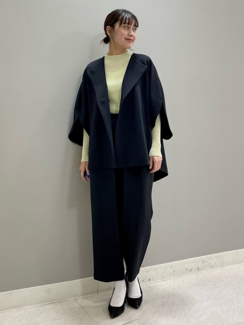 リラックスした着心地と大人モードに決まるシルエットが特徴のセットアップスタイル。 ポンチ素材を使用しているので、着心地はとても楽ですし、イージーケアです! 黒は濃紺に近いような色味なので学校行事にもおすすめ。 差し色やインナー使いに万能なシアーニットとの合わせはすっきり見えするのでおすすめです◎