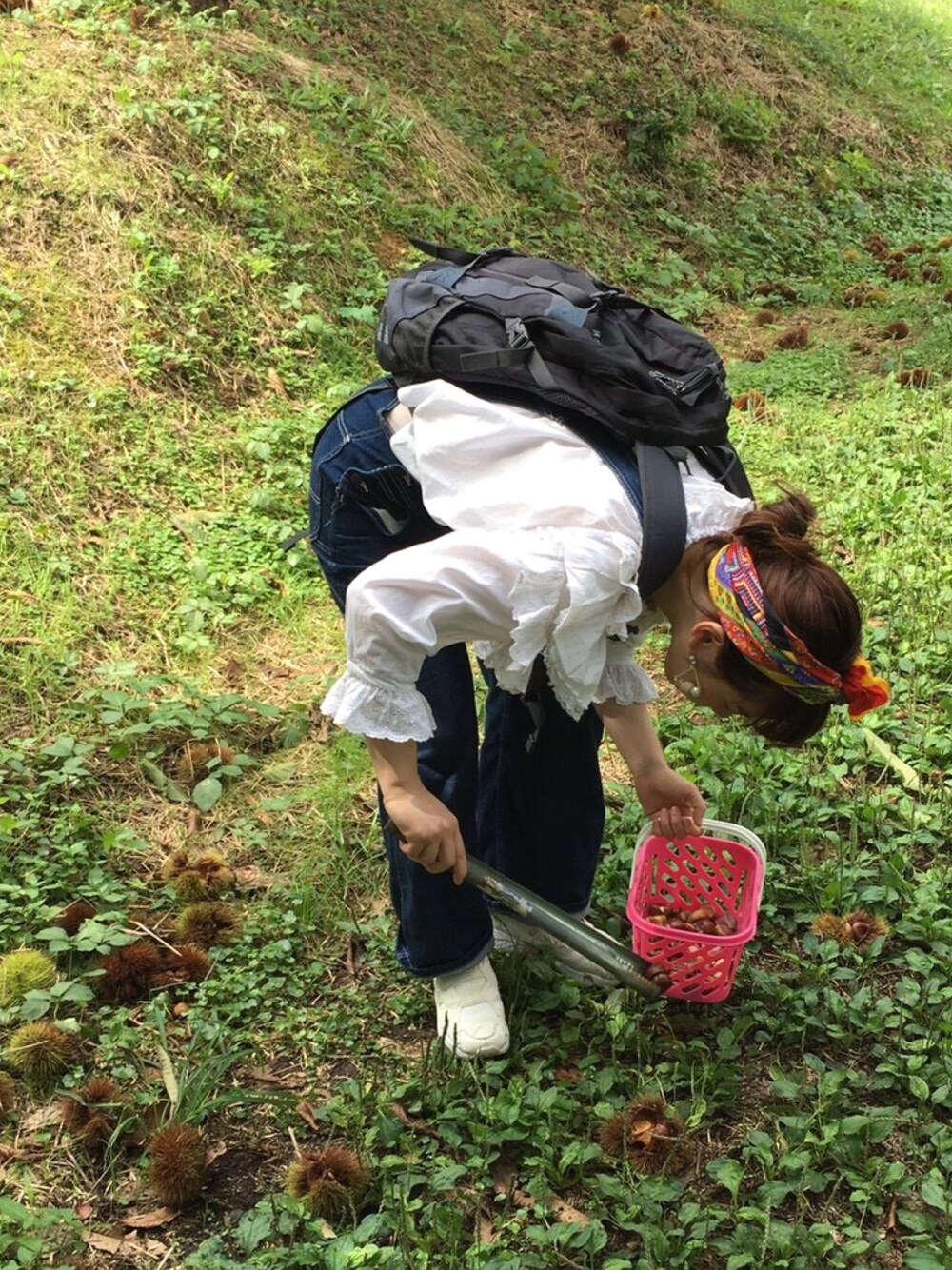 貴重な平日休み。 早起きして初✨栗拾い🌰🌰🌰 最初は掃除やん!と言っていたが、いつの間にか夢中に、、、 ビックサイズの栗ばかり狙う(強欲) カゴ半分の目安が1kgでまさかのピタリ賞。 どうでもいいとこで運使うタイプ。 栗拾い後は動物園。 鳥とヘビ以外は制覇。 大好きなシロクマと『し』ポーズ🐻💓 山に行くときはオーバーオール。 おニューのboutique888のブラウスはフリル満点💮 後ろ前が謎で朝から3回着なおした。。。