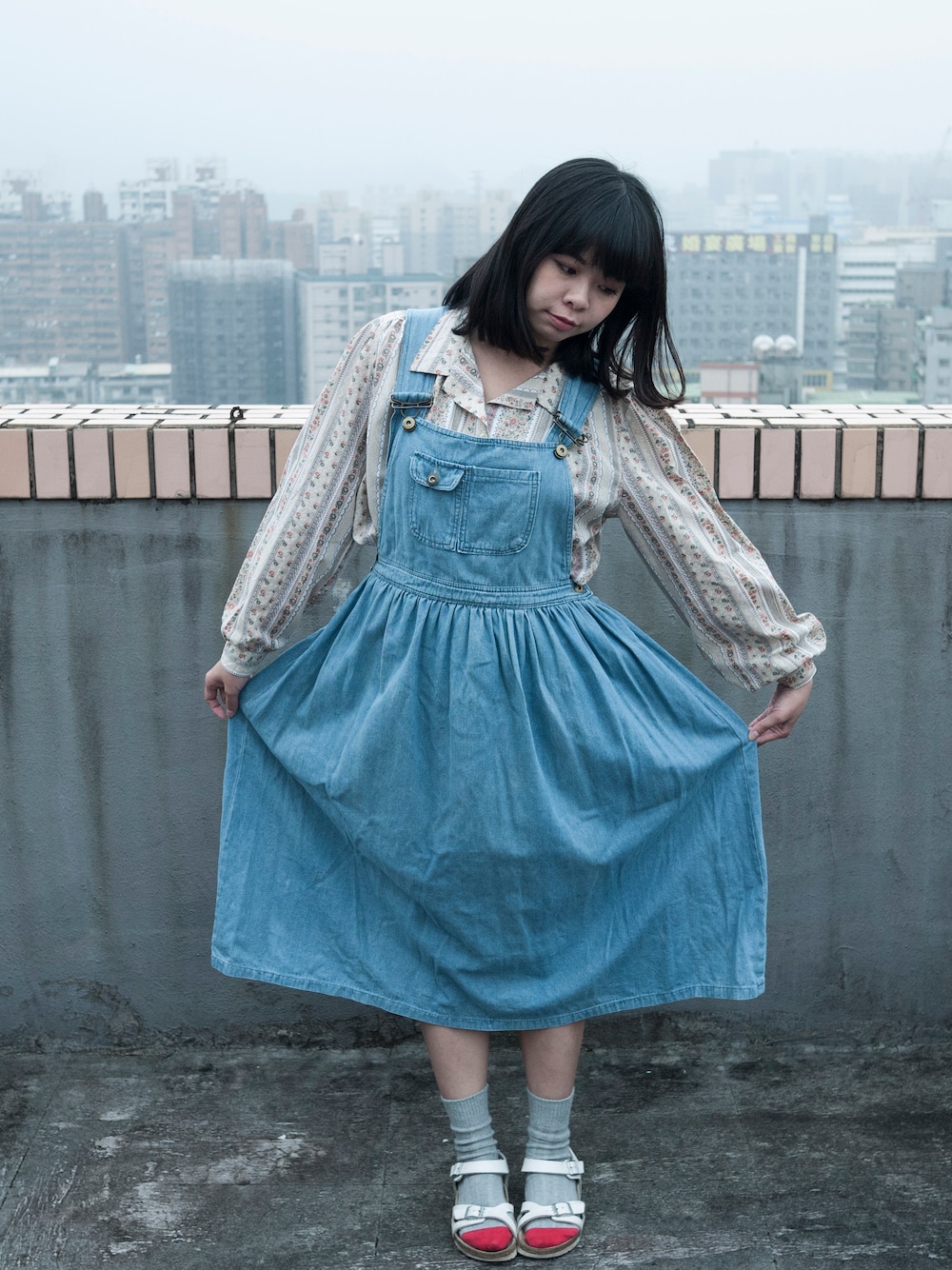 貓咪穿洋裝のワンピース「 ฅ貓咪穿洋裝の瑪莉亞在農場-澎澎牛仔古著洋裝$1080」を使ったコーディネート
