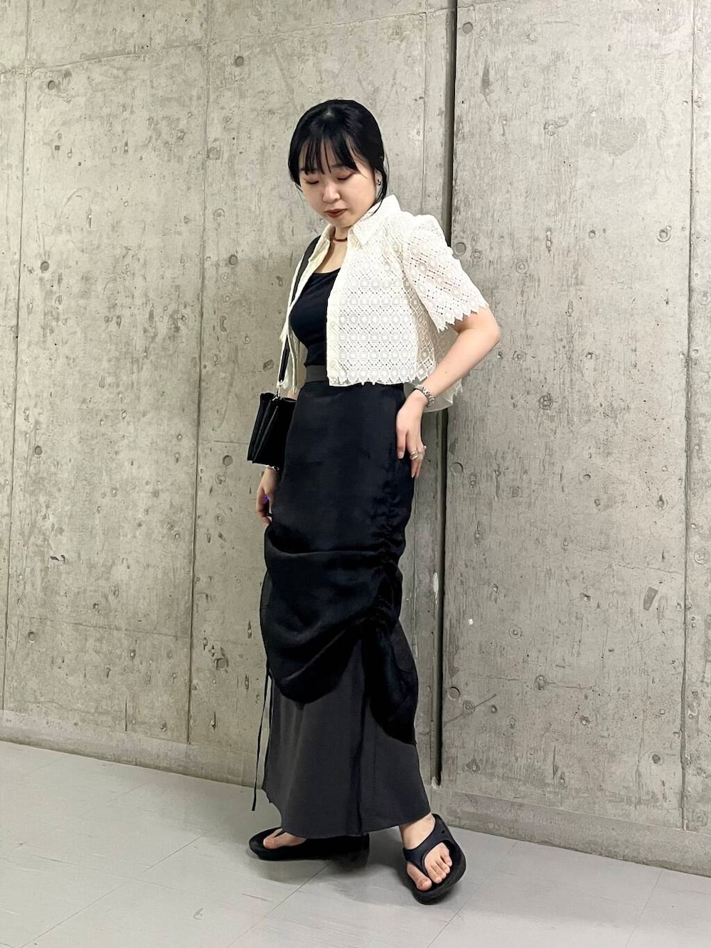 新作のトップスとスカートを履いてみました! トップスはサイズがコンパクトめなので、華奢見えします。 肩が狭め、普通の方におすすめです。 スカートはタイトシルエットですが、後ろがゴムなので楽ちんでした! ぜひお試しください♪ 最後までご覧いただきありがとうございました^^ 次回の投稿も楽しみにしていただけると嬉しいです♡