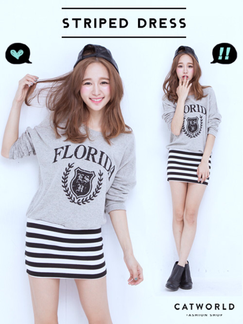 catworldのワンピース「休閒系英文圖T拼接條紋洋裝」を使ったコーディネート