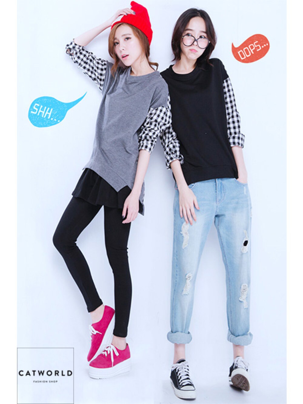 韓系設計前短後長修飾身材拼接經典格紋 休閒又輕鬆! ^_________< Korean design front short back long decorated tall mosaic classic Plaid Casual and relaxed!