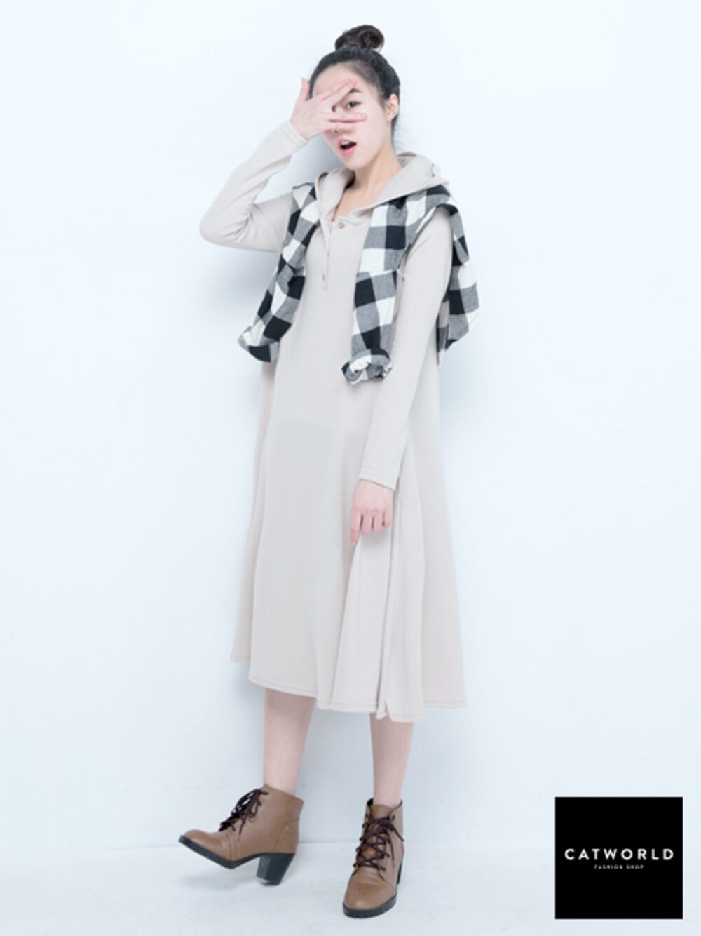 catworldのワンピース「簡約後剪接傘狀口袋長版洋裝」を使ったコーディネート
