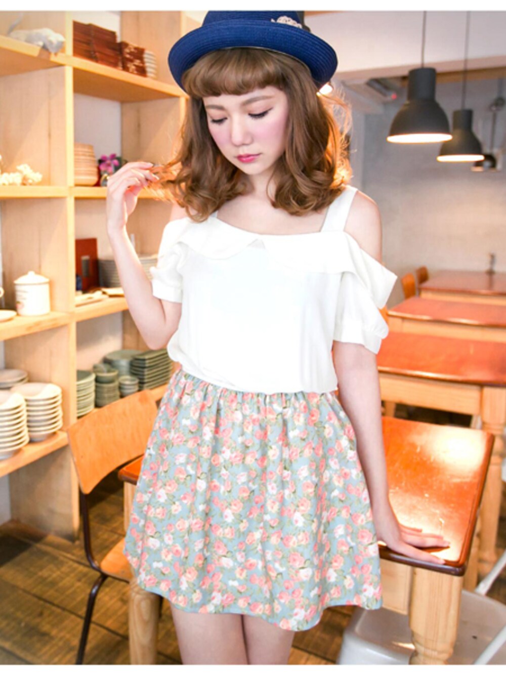 catworldのワンピース「復古領露肩碎花洋裝」を使ったコーディネート