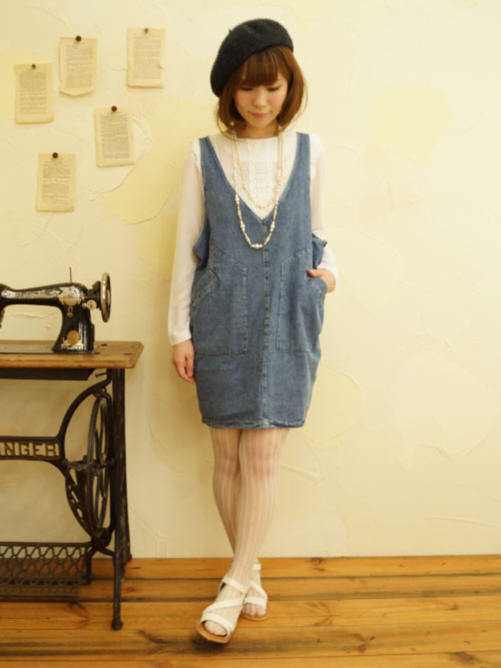 ワンピース ブラウス タイツ サンダル ベレー帽子 アクセサリー すべてcawaii