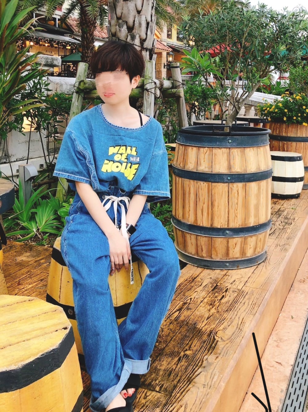 大好きなRNAで一目惚れした デニムのセットアップコーデです🐶💙👖 パンツはウエスト部分で調整できるので 低身長でもゆるっと着こなせます〜