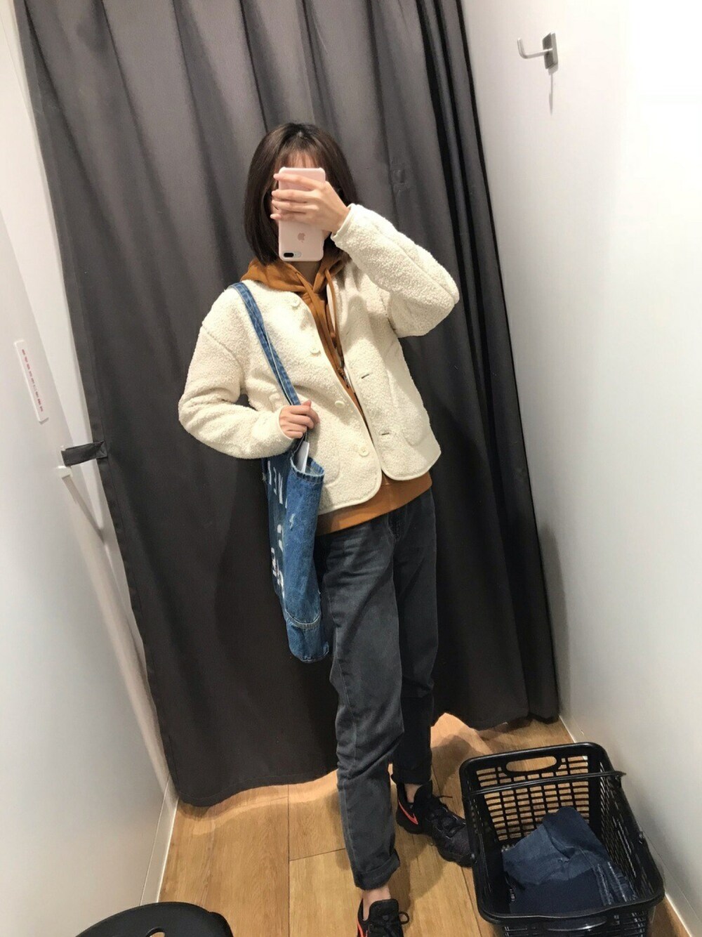 ノーカラージャケット (ベージュ系)ノーカラージャケット