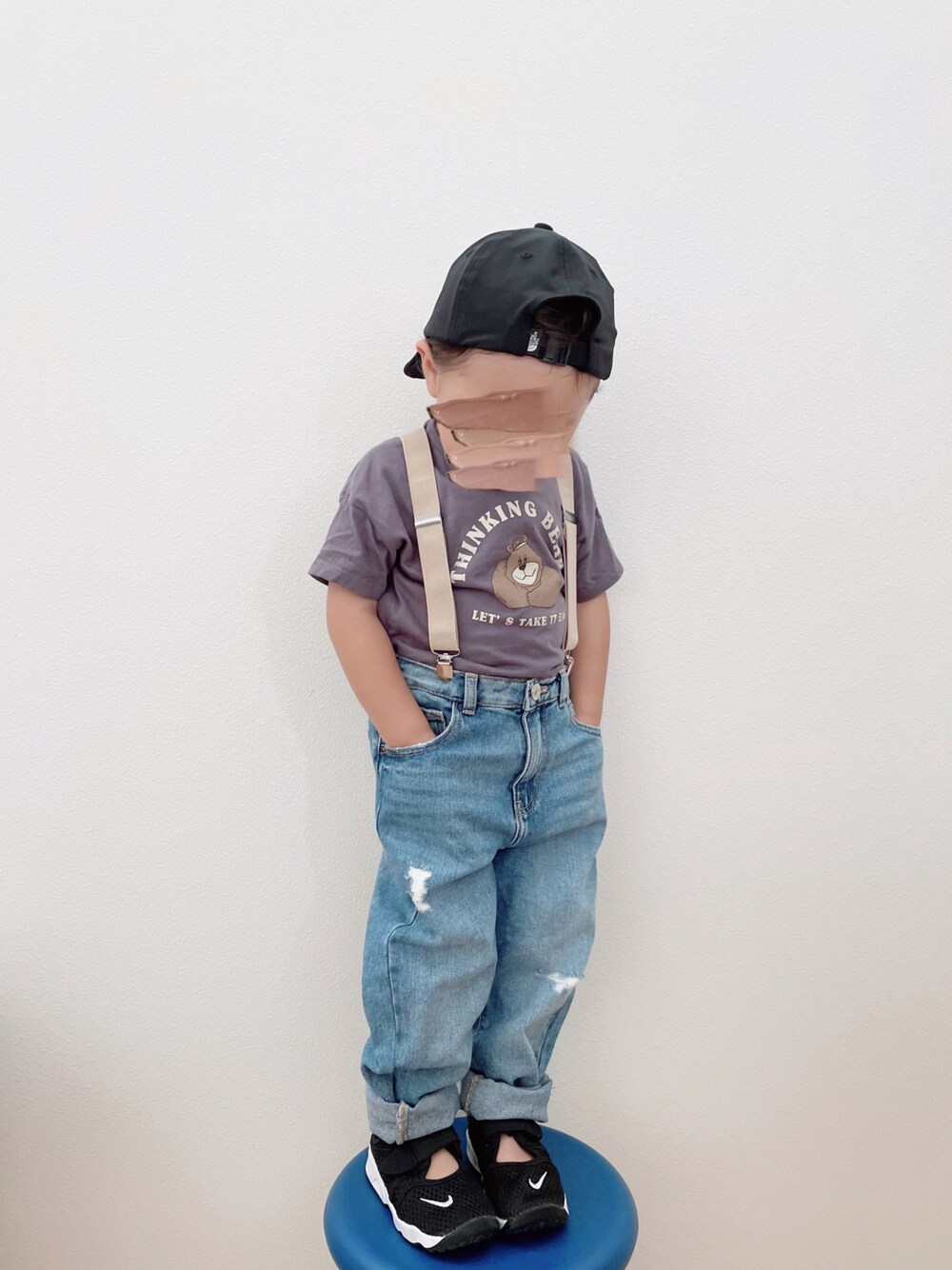 セールでゲットしたデニム♡ サイズ大きめだけど...サスペンダーで︎︎✌︎︎︎✌︎