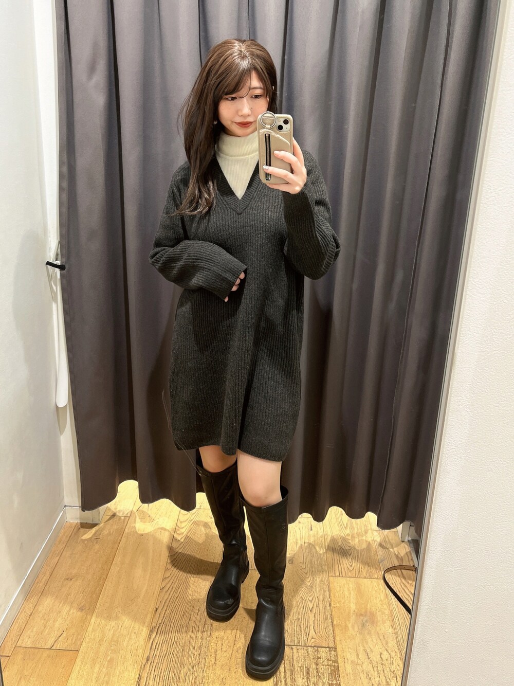 ユニクロのニットワンピ♡ レイヤードして着たら可愛くてヘビロテ♡