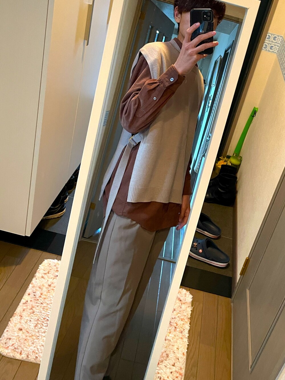 着用コーデ:317件・ ・ こんにちは! コロナ禍で自粛ムードになっている中で出来ることはZOZOで服を買うこと😄 ・ ・ 今回購入したNilwayのニットベスト(S)ですが、丈感がいい感じで、シャツとも相性が良いので今後活躍しそうです👏 ・ ・ サイドも調節でき繋がってない造りなので差別化出来そうです。 ・