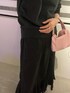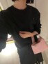 中はこんな感じで。 オールブラックにピンクのバックが映える🎀 (ホテルの照明がいい感じ)