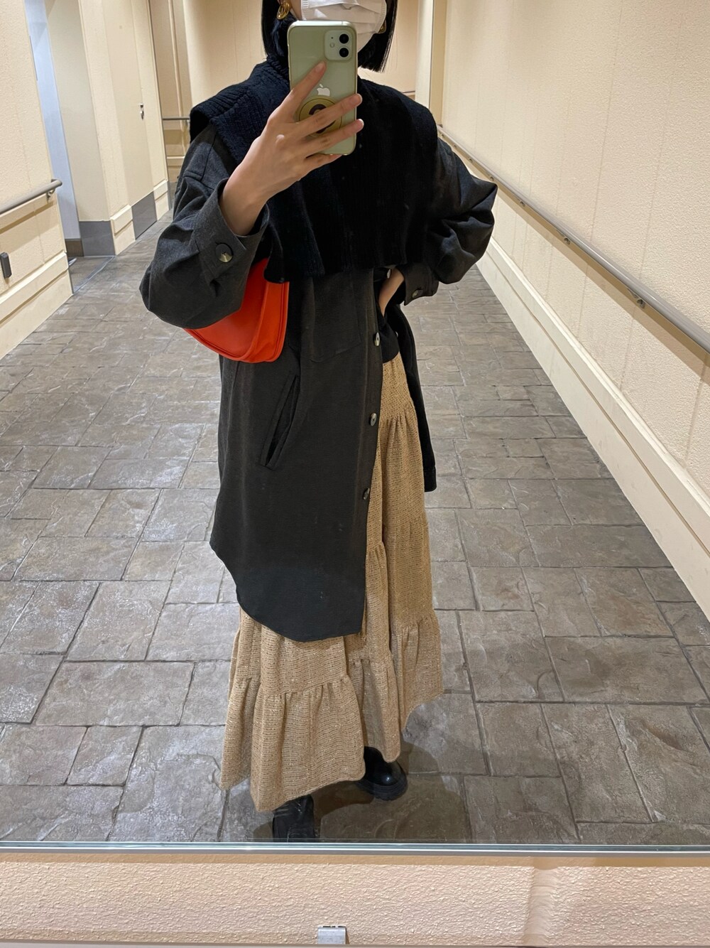 ずっと欲しかった首元ニット、 やっと吉祥寺の古着屋さんで見つけた👀🌱 スカートもお気に入り🎵
