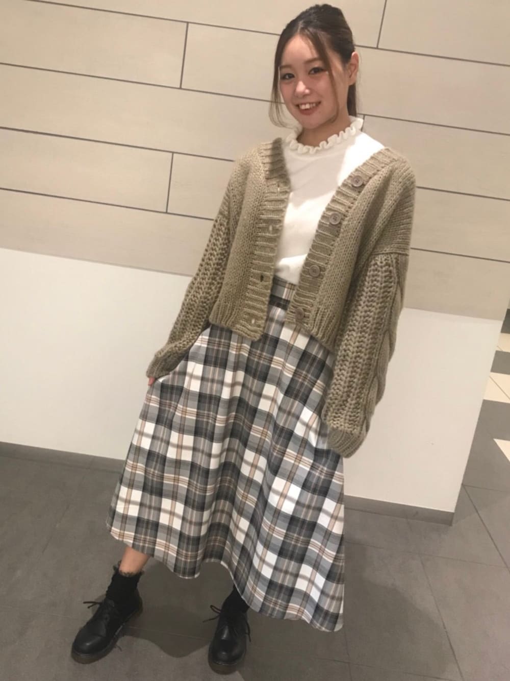 ダブクロの新作カーディガン アクリル100パーで ちょっと重め。。 でも柔らかくて形かわいい☺️☺️ スカートはウエストからきれいに広がるフレアがいい 生地の感じも薄すぎず厚すぎず🙆♀️ グローバルワーク、安くてさまさまです。 渋谷におっきいのできましたよね❤️ 入りびたりがちの日々です、、 靴下はフリルついてて お気に入り〜