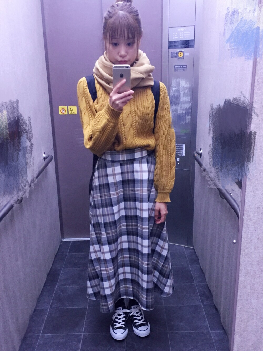 GUのマフラー 薄くて柔らかくて大きくて 巻きやすい🙆♀️ 首つまる系のトップスは お団子ヘアでスッキリいきます🙋